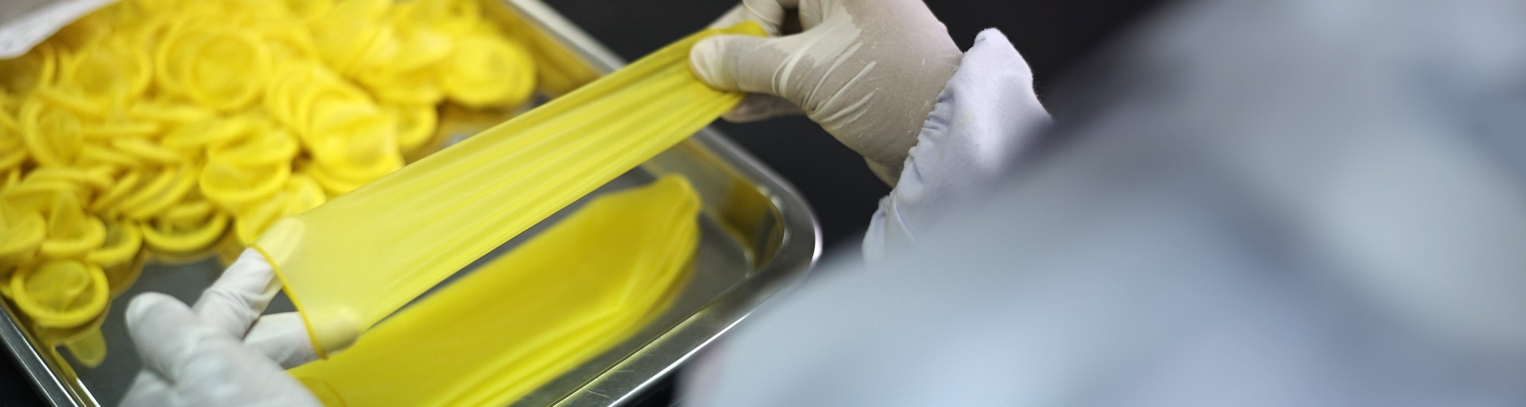 The condoms are carefully visually inspected for any sign of defect.
