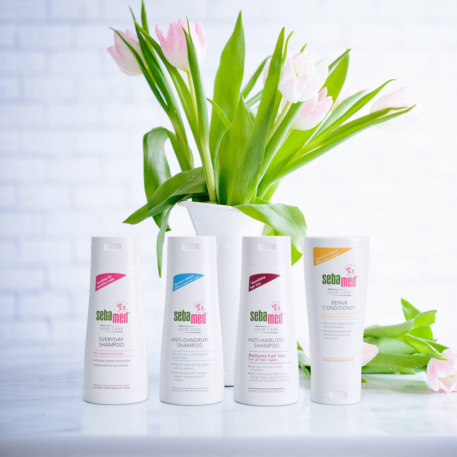 Sebamed hair products are dermatologically and clinically tested and created with the same pH5.5 value of healthy skin, which protects the natural barrier function of the scalp’s acid mantle and helps to protect the overall hair structure.